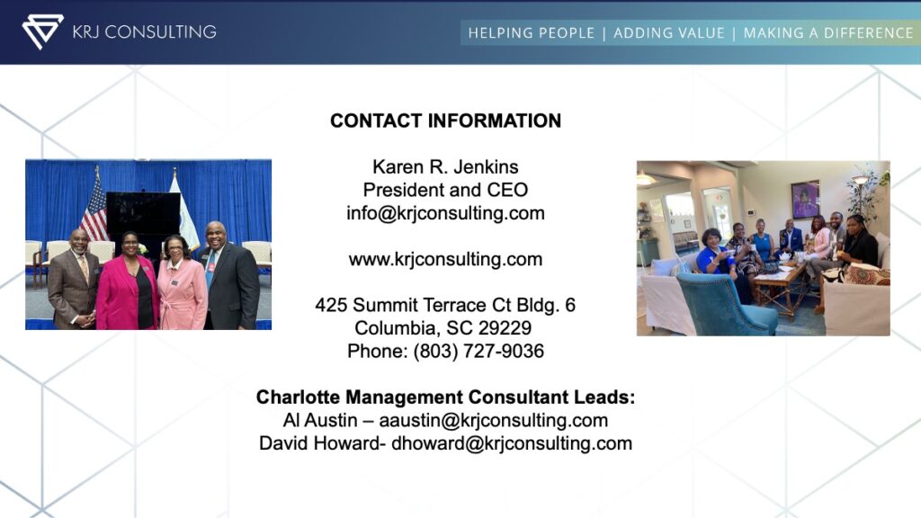 Among the consultants at this Columbia-based firm are two longtime Forum regulars and Charlotte leaders: Both Al Austin and David Howard served terms on Charlotte City Council. Brenda F. Anderson, a KRJ consultant who served First Union/Wachovia in Charlotte in the 1990s, is current CEO of a consulting group in Rowlett, Texas.