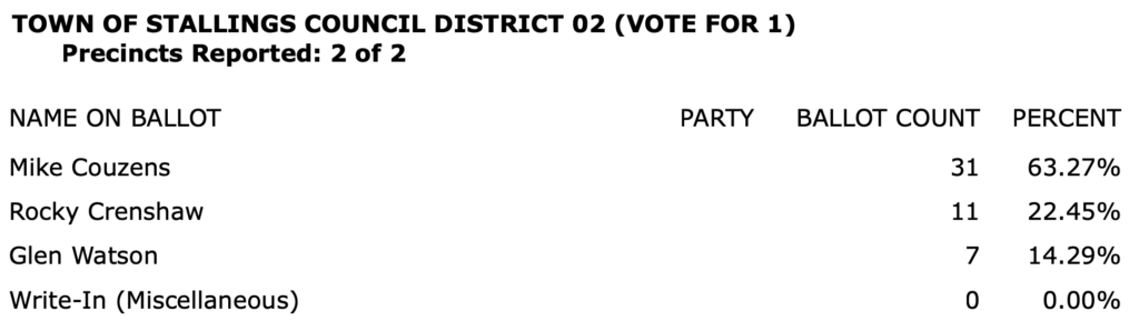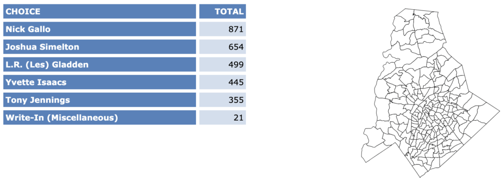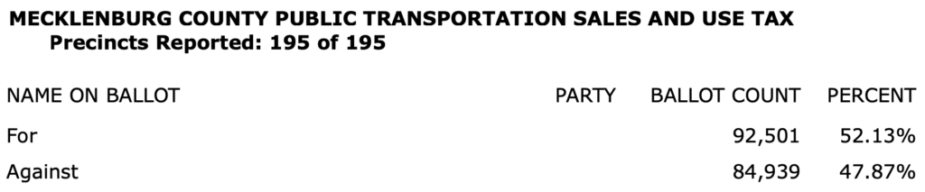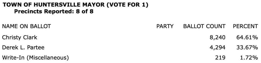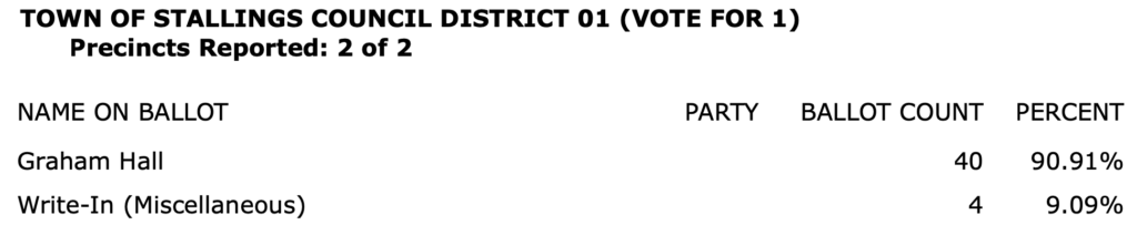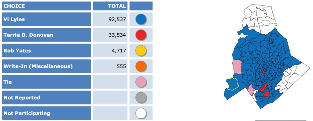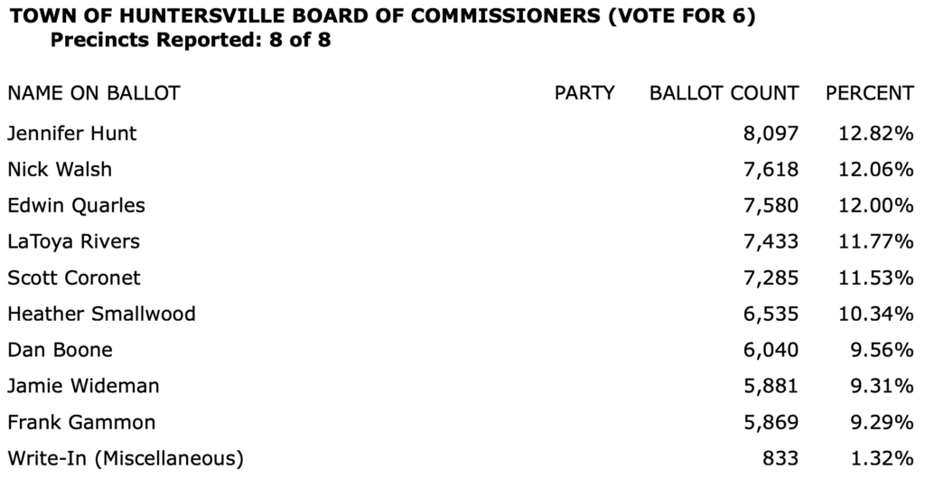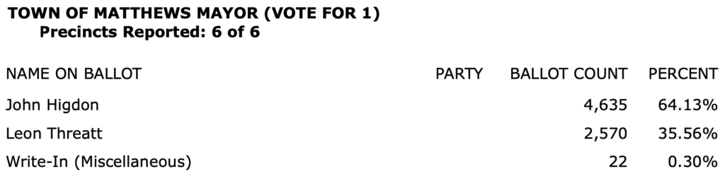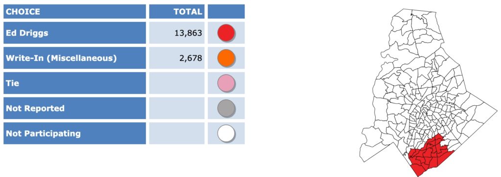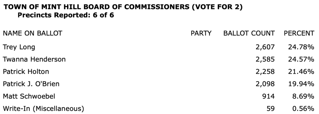 After all polls closed, unofficial Mecklenburg vote totals were available at the NC Board of Elections website here. This page is used chiefly to add election results to the Forum’s archive on individual candidates (e.g., Juanrique Hall) to inform future readers of this website.