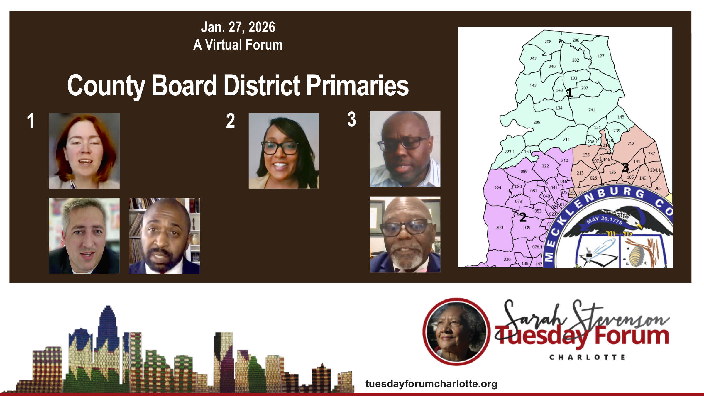 Lingering ice and very cold weather pushed the Forum back to its COVID-19 pandemic days. But there was great interest online in attending a session allowing County Commissioner candidates in Districts 1, 2 and 3 to introduce themselves to a countywide audience.