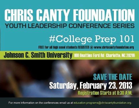 Robert Hillman sent in a flier for a college prep event sponsored by the Chris Canty Foundation Saturday, Feb. 23 at 8:30 a.m. at Johnson C. Smith University, 100 Beatties Ford Rd.