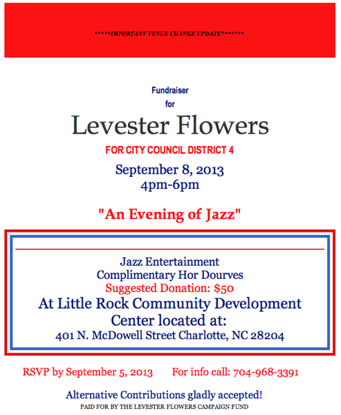Levester Flowers announced a fund-raiser for his City Council District 4 campaign this Sunday, Sept. 8. Details here.