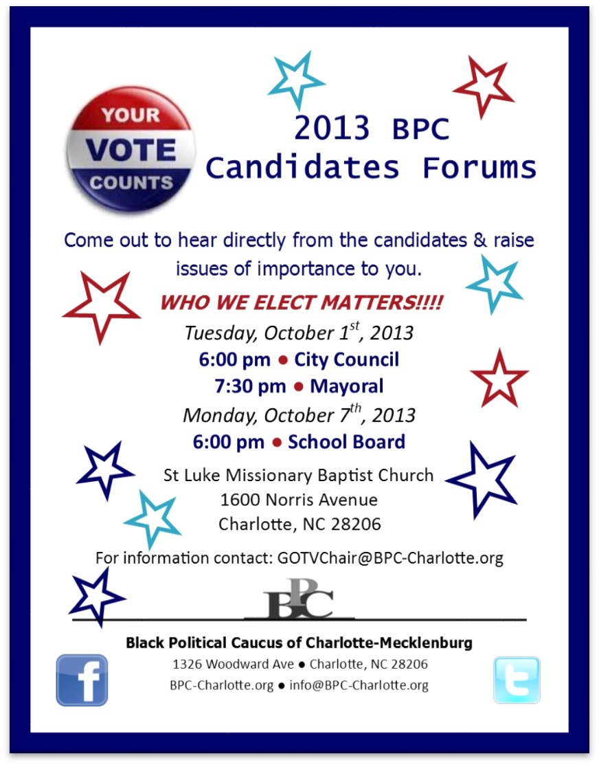 Renee Jarrett announced an AKA Political Forum on Thursday, Oct. 3 at 6 p.m. at Ivy Hall, 2613 Hutchison-McDonald Rd., moderated by WBTV's Brigida Mack. Flier is here.