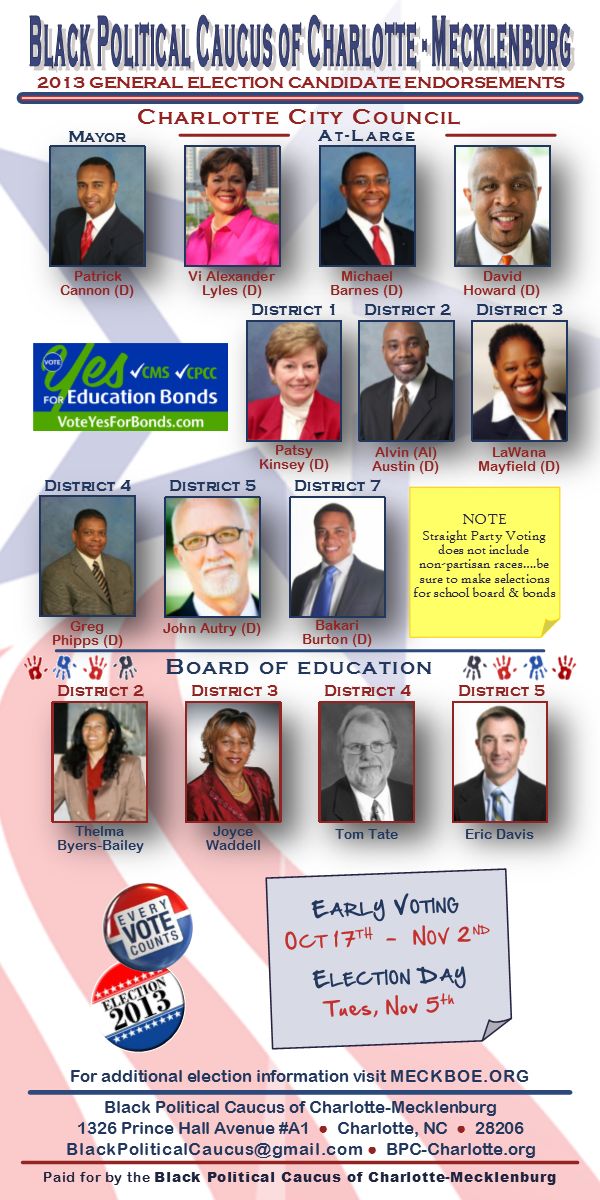 Nakiya Cohen sent in the Black Political Caucus 2013 endorsements.