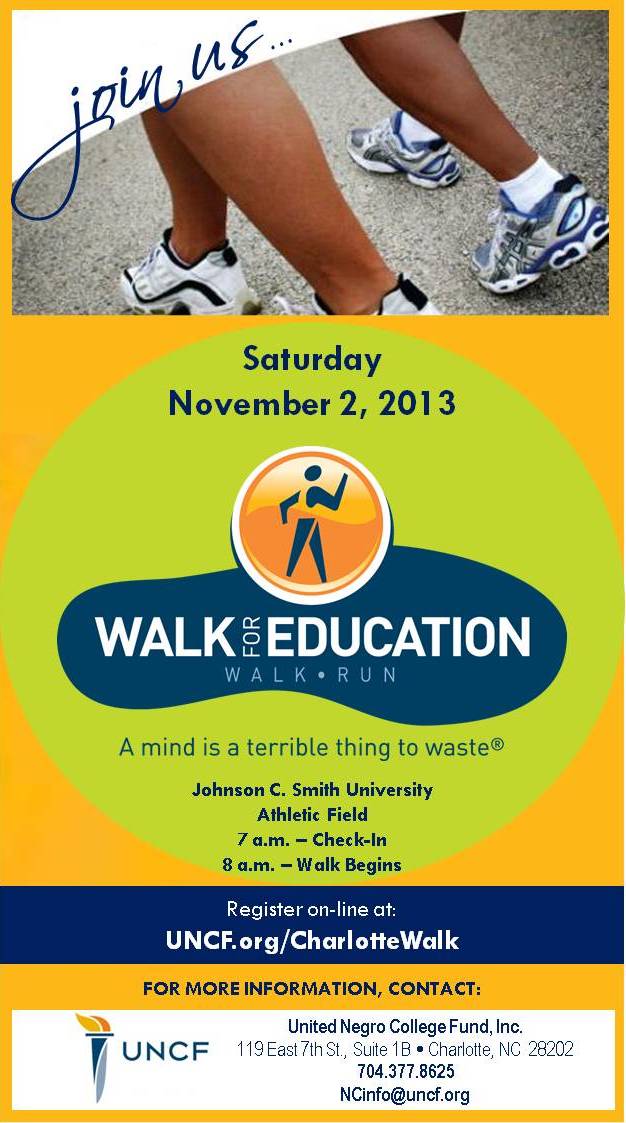 Fund's Walk/Run will be on Saturday, Nov. 2 at Johnson C. Smith University.