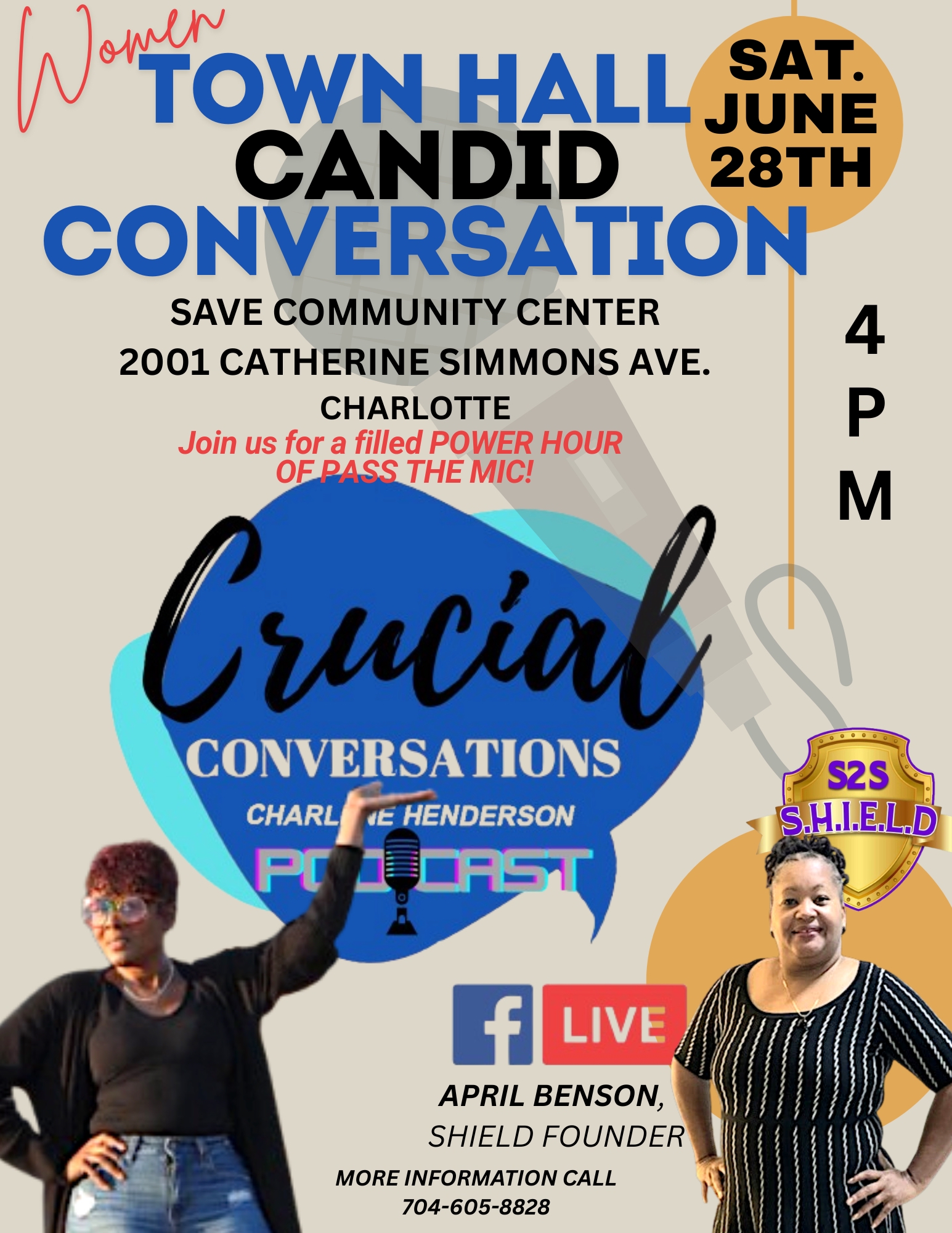 June 28: Town hall candid conversation with April Benson and Charlene Henderson, 4 p.m., 2001 Catherine Simmons Ave.
