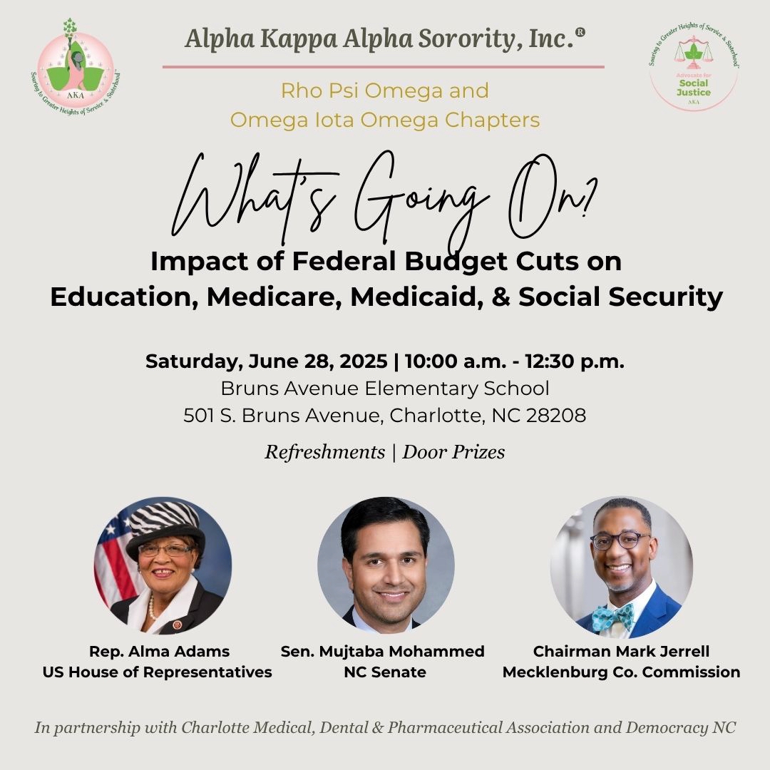 June 28: Alpha Kappa Alpha panel discussion on federal budget cuts, 10 a.m.-12:30 p,m. Bruns Ave Elementary, 501 S. Bruns Ave.