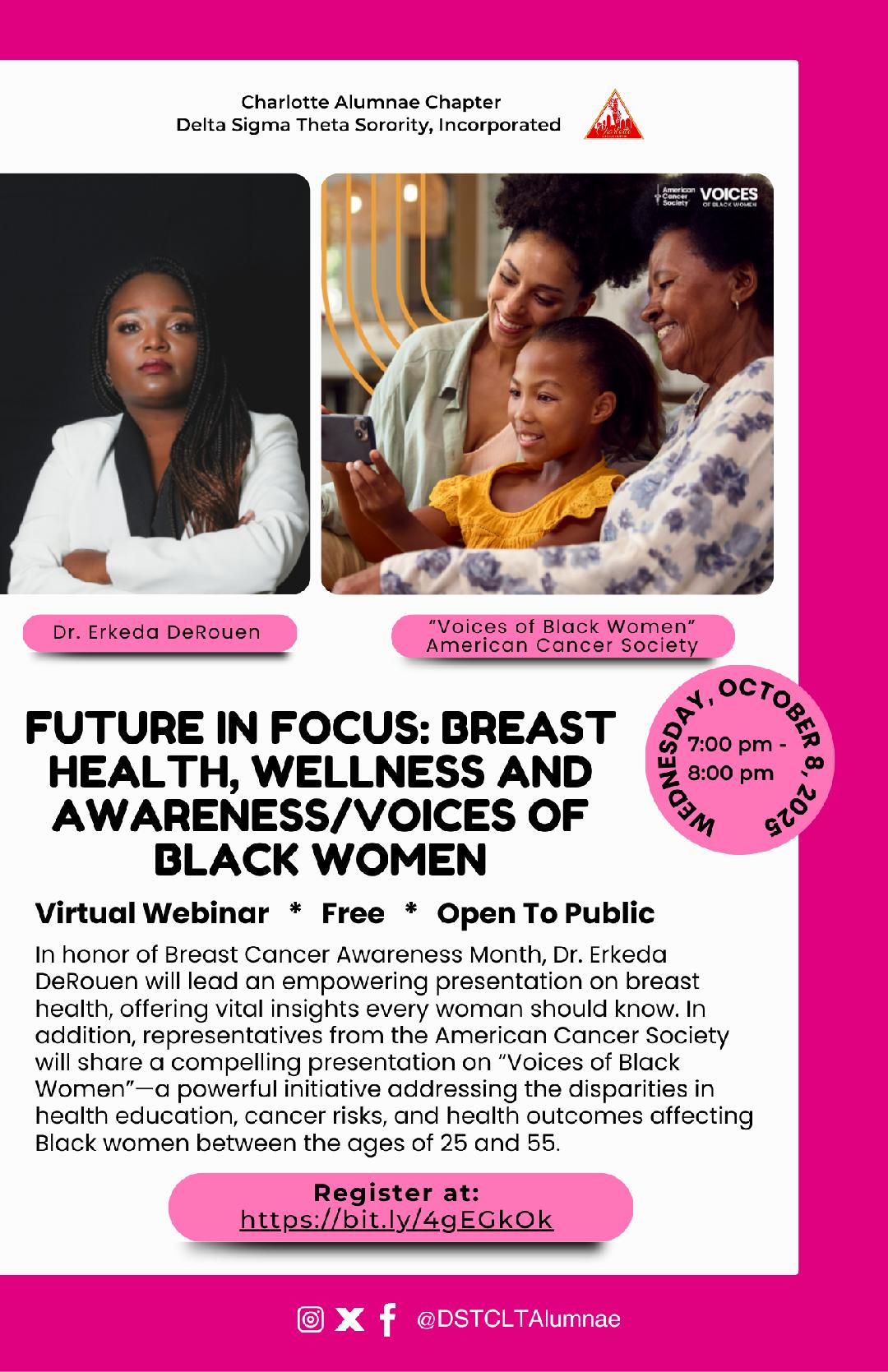 Oct. 8: Free virtual webinar on breast health, wellness and awareness, 7-8 p.m. Register here. Flyer here.