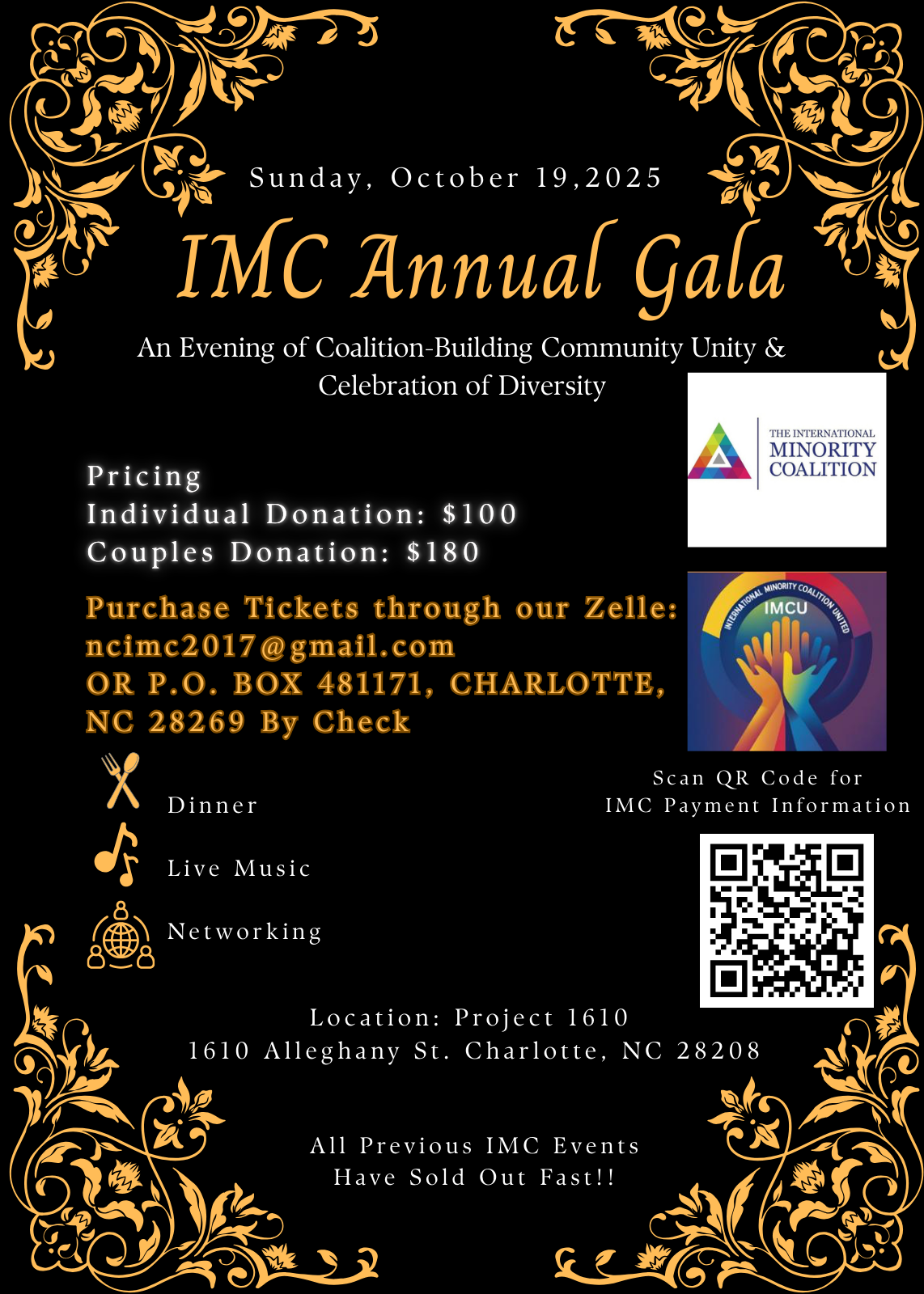 Oct. 19: International Minority Coalition Annual Gala, 6-10 p.m., 1610 Alleghany St.